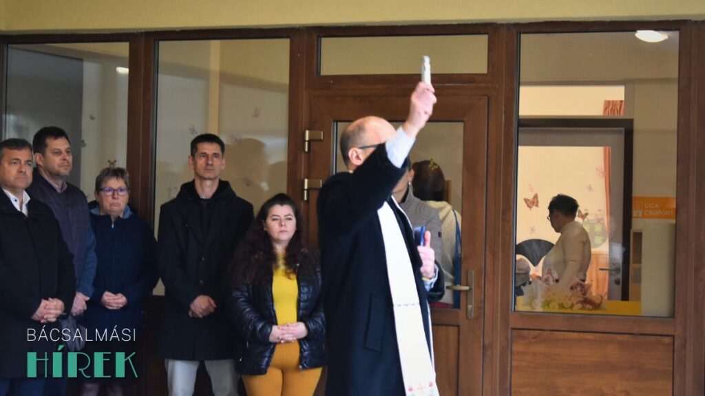 Ezt követte az áldás és szentelés, amelyet Kováts Teodóra református lelkész és Gyöngyösi Balázs katolikus plébános végeztek el az épületnél.