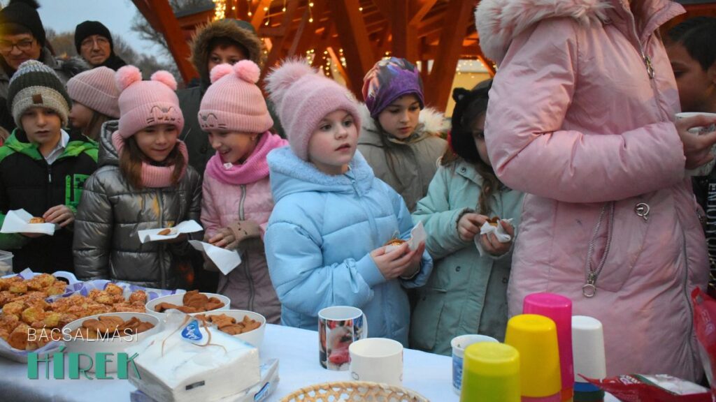 A programot forró kakaó, tea és egy gazdagon megrakott süteményes asztal tette teljessé, ezt követően pedig az Énidő Könyvklub meséje melegítette tovább a résztvevők szívét. Sor került a városi adventi koszorú első gyertyájának, a Hit gyertyájának meggyújtására is.