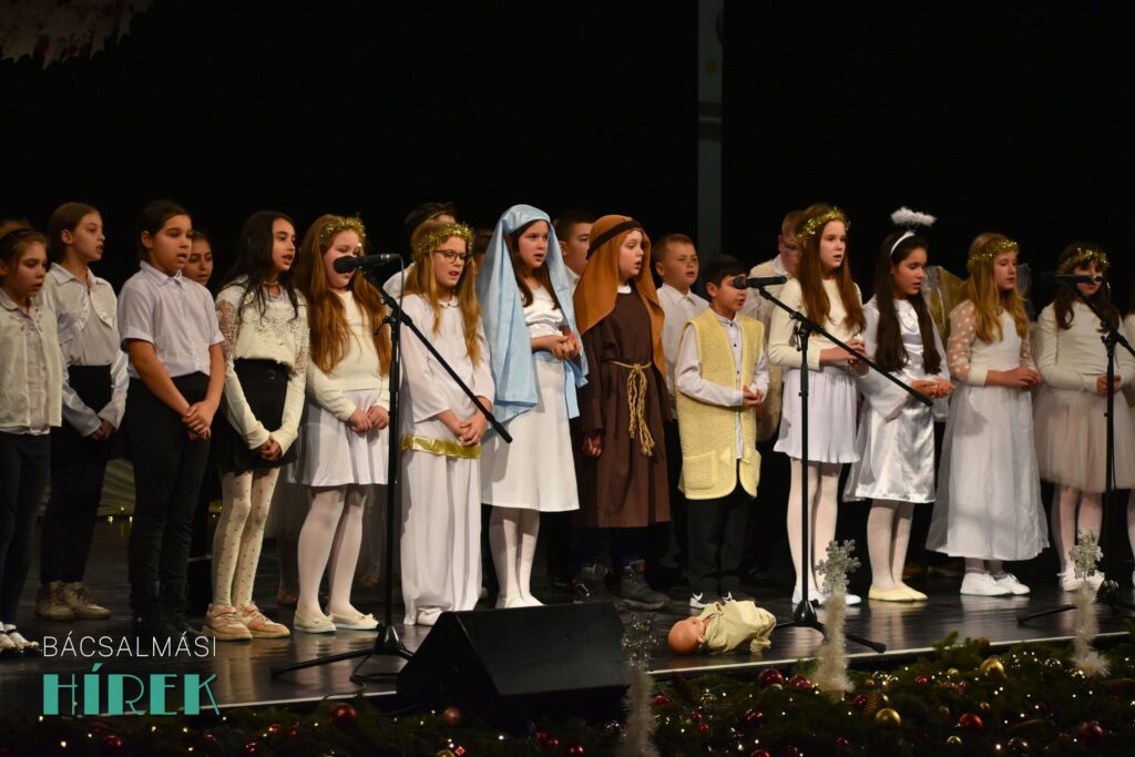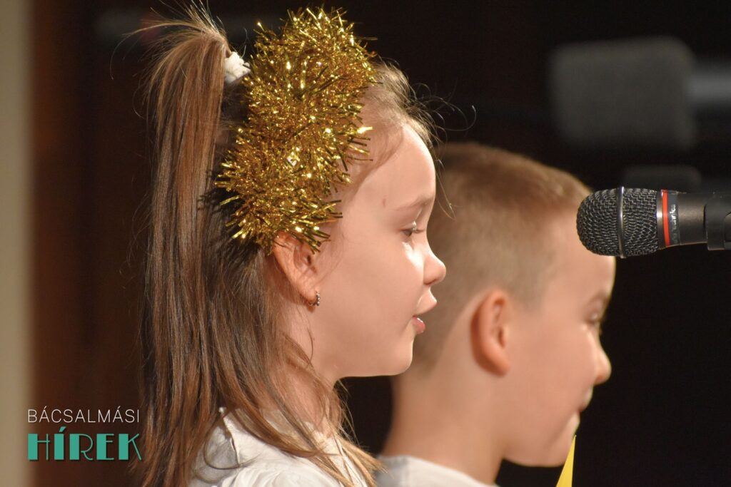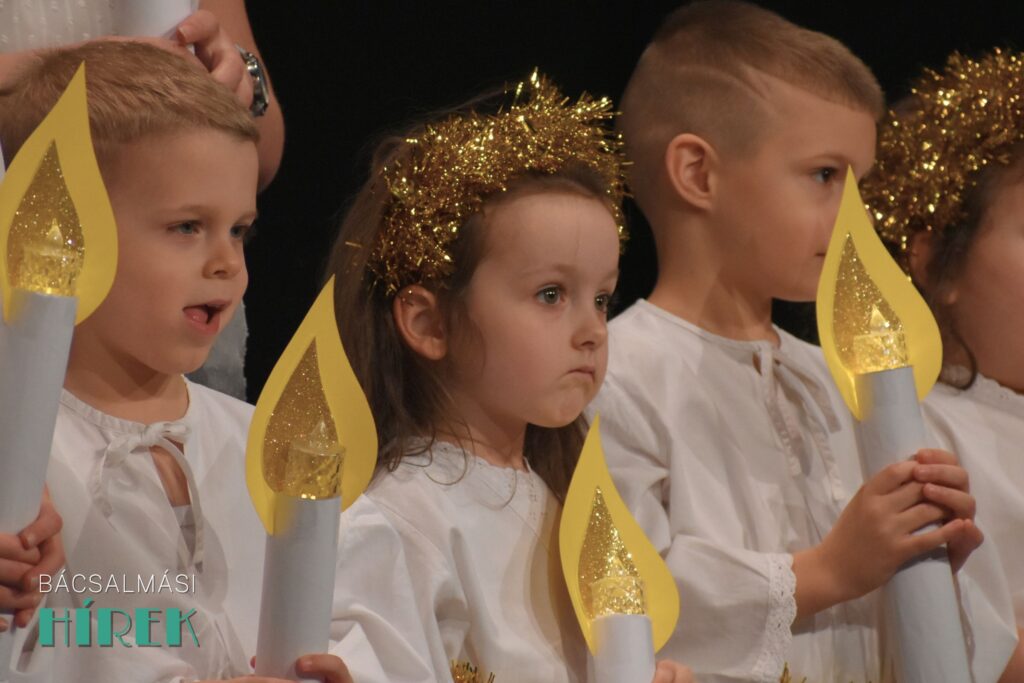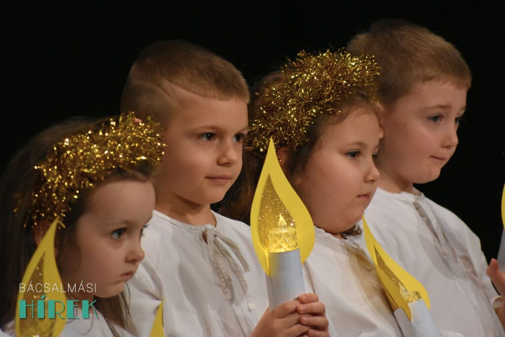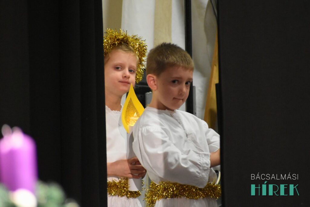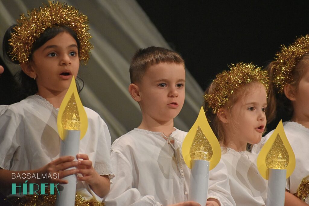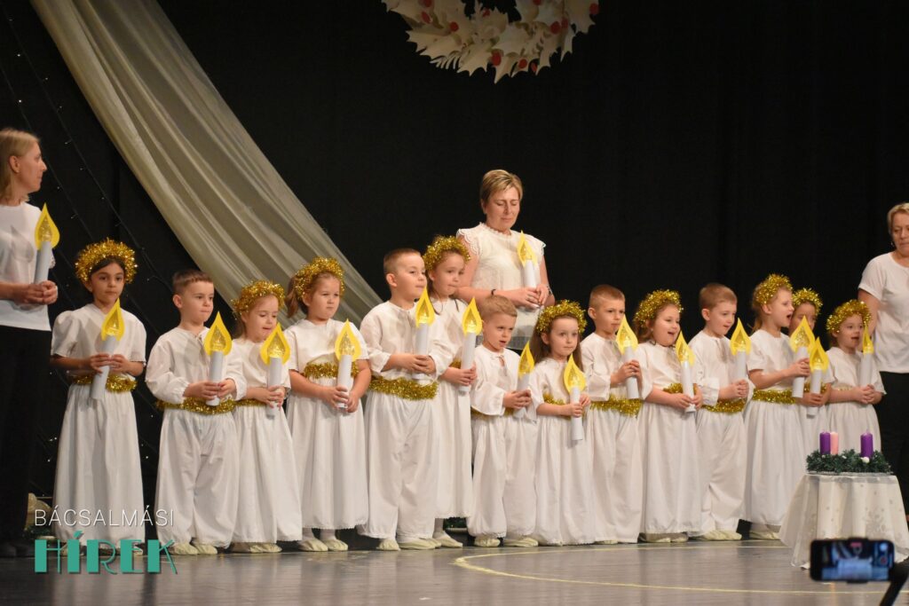 A műsor során a fellépők egymást váltva hozták el az ünnepi hangulatot a színpadra. A legkisebbek ezúttal is hamar magukra vonták a figyelmet. A Bácsalmási Kistérségi Többcélú Társulás Óvoda–Bölcsődéje központi óvodájának Katica csoportja idén is bűbájos előadással jelentkezett. A gyerekek tánca precíz volt, a koreográfia ismerős lehetett azoknak, akik a Máltai Szeretetszolgálat bácsalmási csoportja által szervezett első adventi gyertyagyújtáson is látták őket.