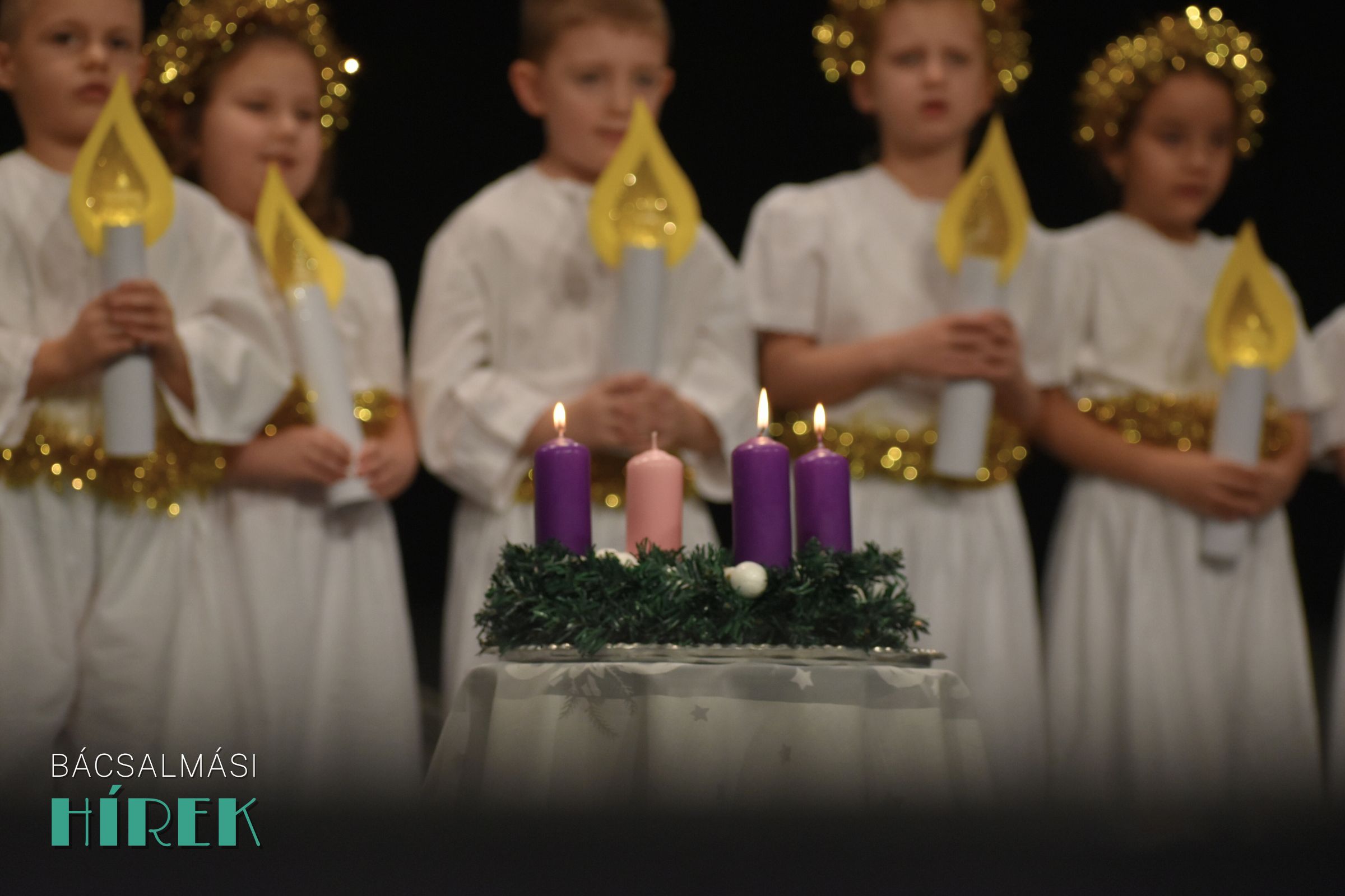 A műsor során a fellépők egymást váltva hozták el az ünnepi hangulatot a színpadra. A legkisebbek ezúttal is hamar magukra vonták a figyelmet. A Bácsalmási Kistérségi Többcélú Társulás Óvoda–Bölcsődéje központi óvodájának Katica csoportja idén is bűbájos előadással jelentkezett. A gyerekek tánca precíz volt, a koreográfia ismerős lehetett azoknak, akik a Máltai Szeretetszolgálat bácsalmási csoportja által szervezett első adventi gyertyagyújtáson is látták őket.