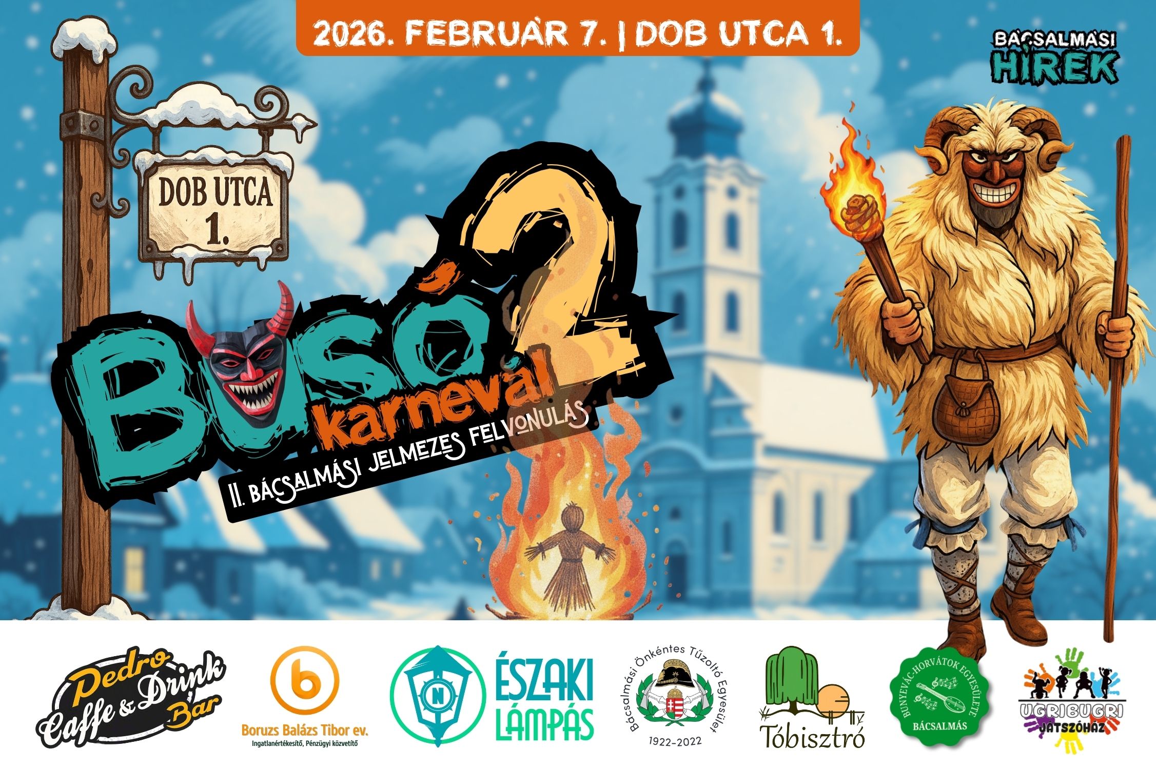 Egyre közelebb a II. Bácsalmási Busó Karnevál, amely február 7-én, szombaton várja az érdeklődőket a Dob utca 1. szám alatt. A rendezvény célja idén is az, hogy közösségi élménnyé formálja a telet búcsúztató, zajos, vidám busós hangulatot, helyi összefogással, sok programmal és jókedvvel.
