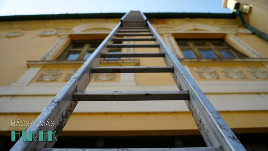 Ma délelőtt lezárták a Csauscher-ház előtti járdaszakaszt, és egy hatalmas létrát állítottak fel az épület mellett. A szakemberek jelenleg is a tetőn dolgoznak.