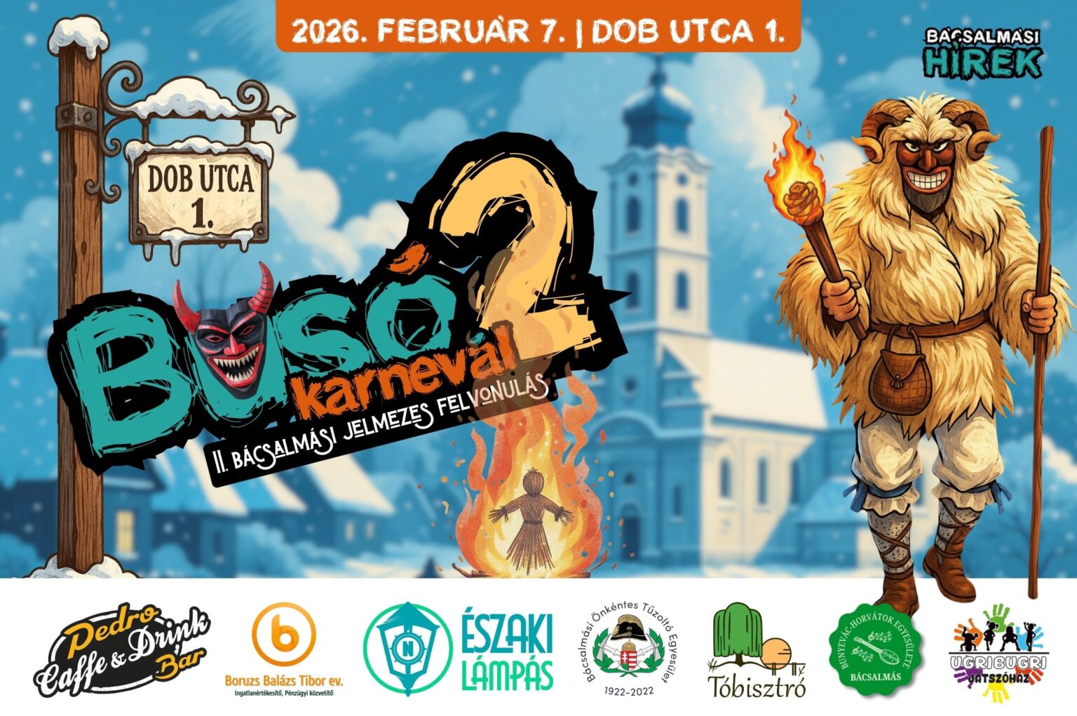 Ahogy azt tavaly áprilisban megígértük: február 7-én visszatér a nagysikerrel megvalósított Busó Karnevál. A II. Busó Karnevált – Chapter 2 idén is mi, a Bácsalmási Hírek kiadója, az Északi Lámpás Kft. és Boruzs Balázs Tibor szervezzük, de idén minden nagyobb lesz: nagyobb tér, nagyobb hangulat, nagyobb fesztivál. A rendezvény egész napos lesz, több mint 100 táncossal és fellépővel, több mint 20 igazi mohácsi busóval, forralt borral, babgulyással, minden eddiginél látványosabb Kisze-báb égetéssel a tavon, hosszabb útvonallal, és ezúttal egy bállal zárjuk a programot a Tóbisztrónál. Hangolódás a Dob utcában 10 órakor a Pedro Caffe & Drink Bar előtt, a Dob…